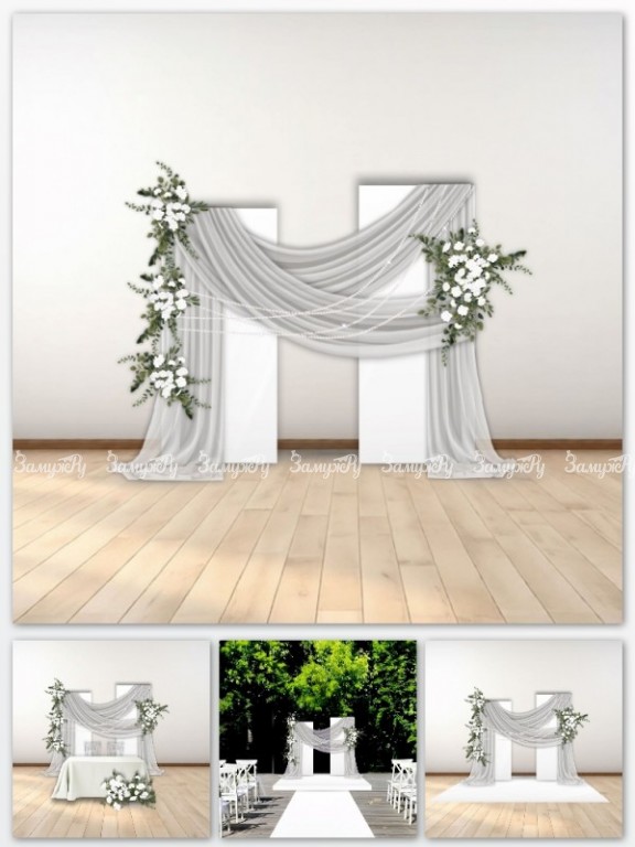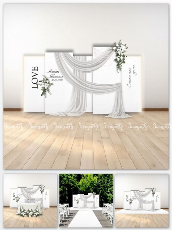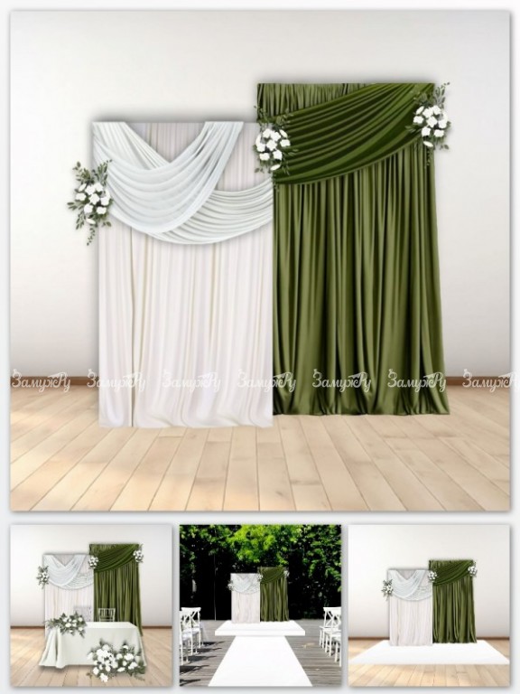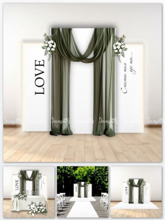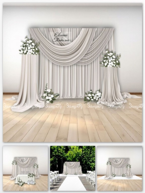 • Тканевый декор фотозоны и президиума на свадьбу, подиумы, планы рассадки.