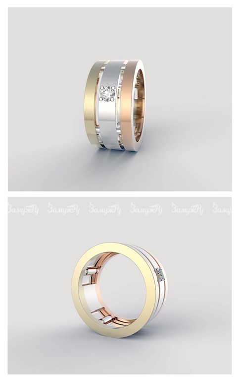 - Обручальные кольца Тринити, которые изготавливаются из трех видов золота: белого, желтого и красного